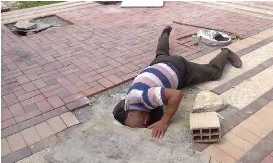 四处寻望后,张素琴发现,一处正在建设的化粪池中掉入一名小男孩。这个化粪池井深两米多,上窄下宽,里面蓄满了水。