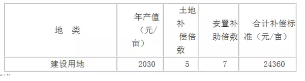 2.耕地:土地补偿费标准为48720元/亩,青苗补偿费标准为1100元/亩。总计耕地补偿标准为49820元/亩。