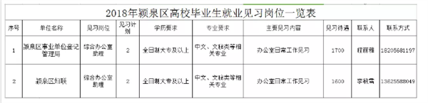 颍泉区妇联等两家见习单位开发高校毕业生就业见习岗位为提高高校毕业生就业能力,拓宽高校毕业生就业渠道,颍泉区妇联、颍泉区事业单位登记管理局等两家见习单位拟开发高校毕业生就业见习岗位4个,吸收2017、2