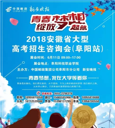 高考临近除了积极备考外家长们也开始关注各类高招信息孩子能报考哪所院校?哪个专业最适合孩子?眼前有个直接与各校老师面对面交流的机会千万别错过! 2018年安徽省大型高招现场公益咨询会(阜阳站